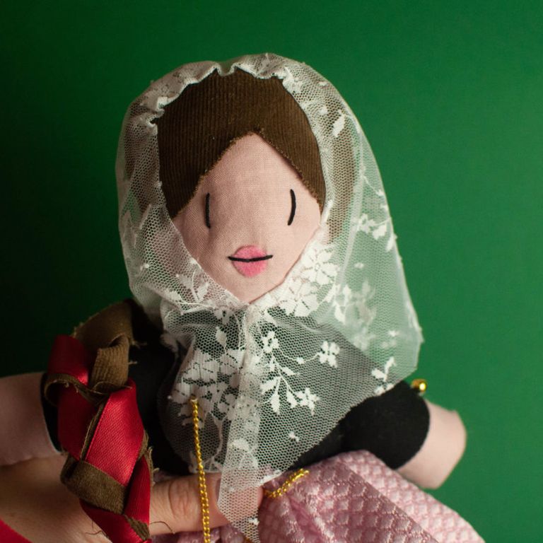 Avui coneixerem a na Margalidota, li deim així perqué té unes mides de 37cm d’alt per 31 d’ample, més grossa que na Margalida (23cm d’alt per 19 d’ample). Ideal per decorar un llit o per jugar amb ella!
